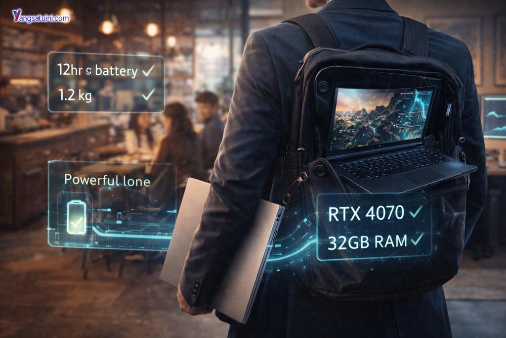 Jika pekerjaan didominasi mobilitas dan tugas ringan-menengah, laptop tipis terasa lebih masuk akal. Jika pekerjaan menuntut stabilitas performa dan sesi kerja panjang, laptop bertenaga memberi ketenangan.